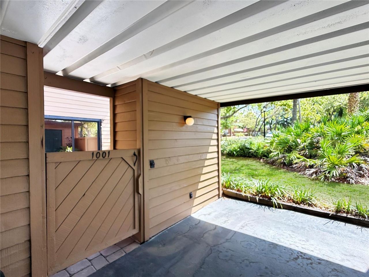 One or more photo(s) has been virtually staged. Welcome to your new Glen Eagles condominium home. This is a 1st floor, 2 bedroom, 2 bathroom condo, nestled in a quiet corner of the community, and nearby to the clubhouse and community amenities. Glen Eagles of Palm Harbor is pet friendly community catering to all ages and situated amongst well-manicured landscaping and mature trees. Access is provided via your gated courtyard adjacent to the covered parking space. This home offers everyday comfort, convenience, and well-organized living with ample storage space. This is a very well laid out 1050 square feet, starting with the spacious living room featuring an abundance of natural light and connected to the generous dining space and open kitchen, making dinner or entertaining with family and friends delightful. A private screened patio provides a second outdoor space, accessible by the main living or the master suite sliders allowing enjoyment of the outdoors from the privacy of your own home. The kitchen is centrally located and offers solid surface countertops and sinks, recently updated stainless appliances and refinished cabinetry. The laundry room, located off of the kitchen, comes complete with full size washer & dryer and pantry storage for your kitchen. The condo features a split floorplan for maximum privacy. The primary ensuite provides a large bedroom, and bathroom offers deep walk-in closet, additional linen closet, extended vanity, and walk-in shower. The large guest bedroom is located in the front of the home with a deep closet and easy access to the guest bathroom featuring a linen closet, vanity and tub/shower. Other features include a covered parking space, exterior storage closet, and guest parking only steps away. Residents enjoy access to community amenities include a heated/chilled pool, tennis/pickleball courts, and a clubhouse with monthly social events. Gleneagles offers a quiet setting adjacent to the Innisbrook golf course, while still being close to shopping, dining, nearby Honeymoon Island and all that Palm Harbor has to offer.
