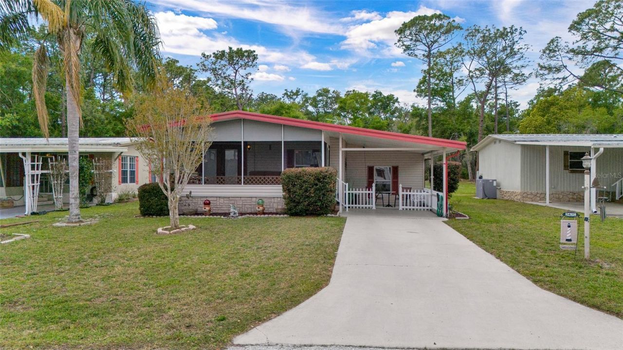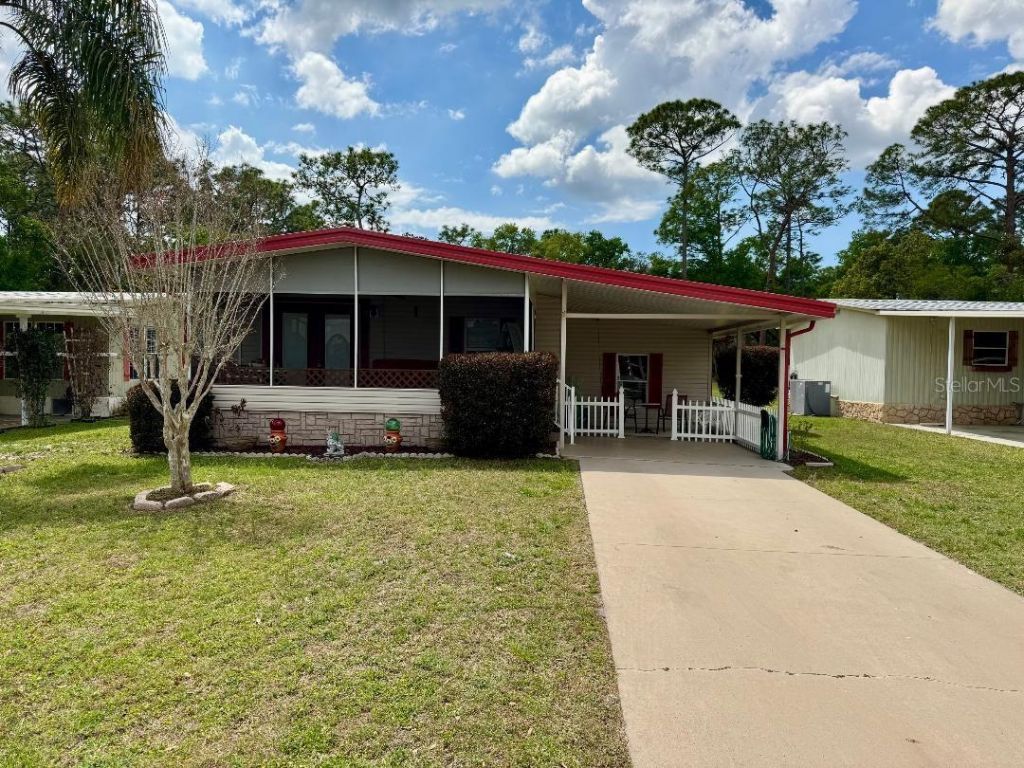 Beautiful property in the Dora Pines 55+ community located in charming Mount Dora, this 2-bedroom, 2-bath home offers a practical layout with a flexible bonus room that can be used as a second living area, office, or hobby space. The home sits on a lot with no rear neighbors, providing a more private setting with wooded views. A back patio offers space to relax or entertain, and the yard includes mature landscaping. Key updates include a new A/C (2025), along with updated electrical and plumbing systems and a year old water heater. A separate utility room adds functionality, and two storage sheds provide additional space for storage or tools.Conveniently positioned near shopping, dining, and major roadways, with access to downtown Mount Dora's shops, restaurants, and local events. This property is a solid option for year-round living or a seasonal residence with added flexibility.