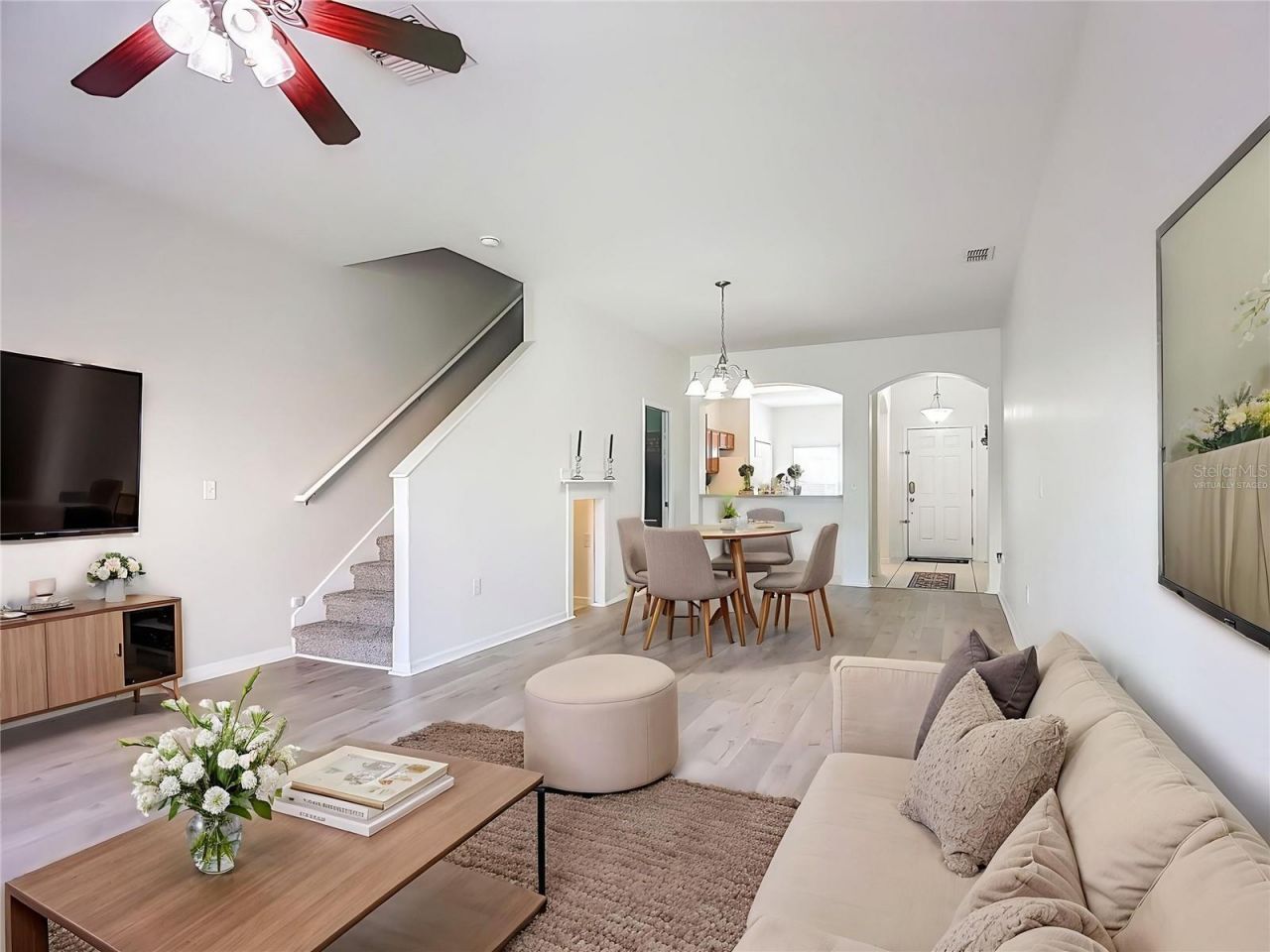 One or more photos was virtually staged Prime Location - Gated Community 3BR/2.5BA Townhome on Winding Vine DriveWelcome home to this beautifully maintained 3-bedroom, 2.5-bath townhome located in a desirable gated community on Winding Vine Drive, offering convenience, comfort, and thoughtful updates throughout. Ideally situated near restaurants, shopping centers, supermarkets, the Fort Frasier multi-use trail, and a hospital, with easy access to both Orlando and Tampa, this home is truly move-in ready. This home has been maintained by a smoke-free, pet-free single owner. The interior was freshly painted in 2026 and features a bright, open floorplan. The main level showcases Pergo flooring and tile, while brand-new carpet upstairs (2026) adds warmth and comfort to the bedrooms. The kitchen is well-equipped with a touchless faucet and all new appliances installed in March 2026, along with ample cabinet space for everyday living and entertaining. Hide all of those Christmas decorations in the under the stairs tasteful storage area.Major systems have been updated for peace of mind, including a new A/C in 2025, a new clothes washer (2025), a newer dryer, and a hot water heater approximately four years old. Upstairs, the spacious primary suite offers generous closet space and a private bath, while two additional bedrooms share a full bathroom. A convenient half bath is located downstairs for guests.Enjoy outdoor living on the covered/screened patio, perfect for relaxing after a long day. And the best part? Exterior painting and pressure washing are handled by the HOA-so you can officially retire the ladder and pressure washer and just enjoy the home. Community amenities include a pool, and the neighborhood is zoned for Lincoln Avenue Academy.
