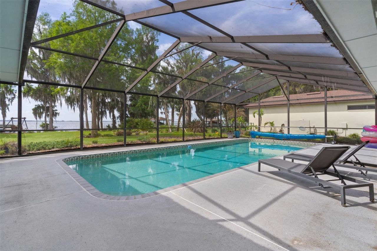 Truly a florida lifestyle Pool home, tucked away in a lovely 1 streeted, very small community, on lake Harris. Current owners have done so much of an upgrade to this home. In the kitchen they moved the stove top to the island with custom island and ventless cooktop, new cabinetry and lighting, new fixtures, new pantry. In the great room new bookcases with lighting... down the hall There is a third bedroom. They turned a film, darkroom into such a nice full bath. Brand new luxury vinyl plank flooring in the house. In the primary bedroom, A New big walk in closet. Upon entry of the front door, you walk into a massive great room with kitchen and dinette area at one end. From the great room, you're overlooking the pool area and still have a great view of the lake. Primary bedroom on one end With large bathroom. In the hallway is a 1/2 bath. On the other end of the house down the hall , you have the laundry room, a second bedroom, a full bath in the hallway and a third bedroom at the end of the house overlooking the lake , with its own full bath. Massive pool area, screen in, covered area. Grilling and chilling. Beautiful backyard facing the lake.. walk out on to the pier, enjoy fishing from the pier, or put that boat in the water and enjoy a ride to the tiki bars within minutes of this location. Come and enjoy Florida for all.It has to offer.