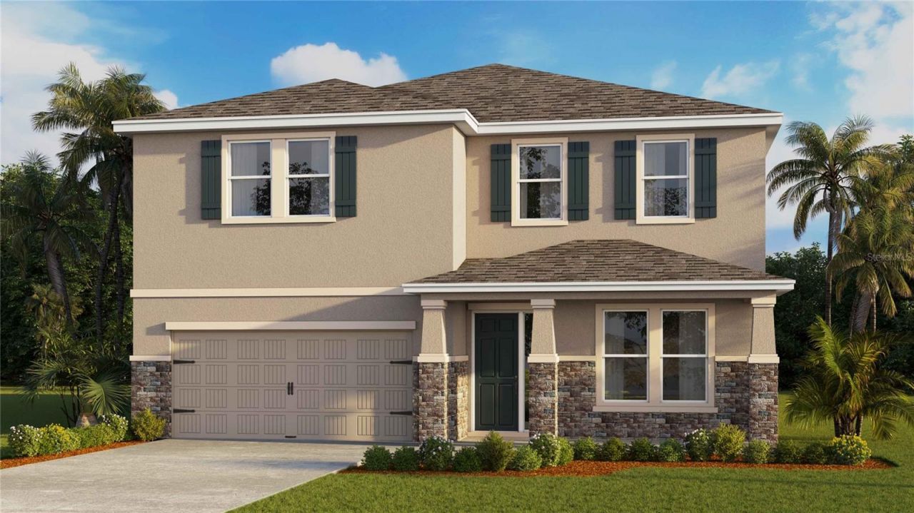 Under Construction. This two-story, all concrete block constructed home has a large open concept first floor with a kitchen overlooking the great room, dining area, and a covered lanai. A flex room at the entrance of the home, as well as a spacious guest bedroom and full bathroom, complete the first floor. Upstairs, Bedroom 1 with ensuite bathroom, three additional bedrooms, a third full bathroom, and a well-appointed laundry room surround a large loft. This home comes with an installed stainless-steel dishwasher, electric range, and microwave. Pictures, photographs, colors, features, and sizes are for illustration purposes only and will vary from the homes as built. Home and community information including pricing, included features, terms, availability, and amenities are subject to change and prior sale at any time without notice or obligation. CRC057592.