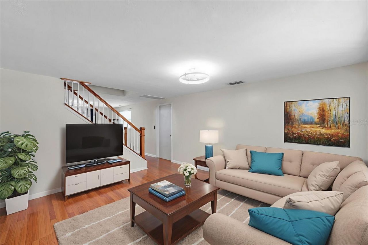 CHARMING home just minutes to beautiful beaches. NOT the typical ranch style. EAT-IN kitchen has a gas cooktop, double oven, pantry with pull-out drawers, etc. One bedroom is downstairs and 2 are upstairs. Deep soaking tub in one bathroom and a walk-in shower in the 2nd bathroom. Built in shelves in the upstairs bedrooms can be pulled out to access the air handler and attic storage. Tile and vinyl flooring, NO carpeting. Double French doors from the back of the house lead to the large backyard. Composite deck with a roll-out Sunbrella shade. Hot tub next to the deck and the tv stays for your enjoyment. 2 large sheds plus a lean-to shed in the backyard make great storage or a man-cave or she-shed. NO HOA. NO CDD. NON evacuation zone. Enjoy the 39th Annual Green Thumb Festival on April 25th and 26th at Walter Fuller Park just a few blocks away. Walter Fuller Park also has pickleball, a 1.5 acre dog park, heated pool, paved lake trail, playground, baseball fields, etc. The perfect home to make wonderful memories in!