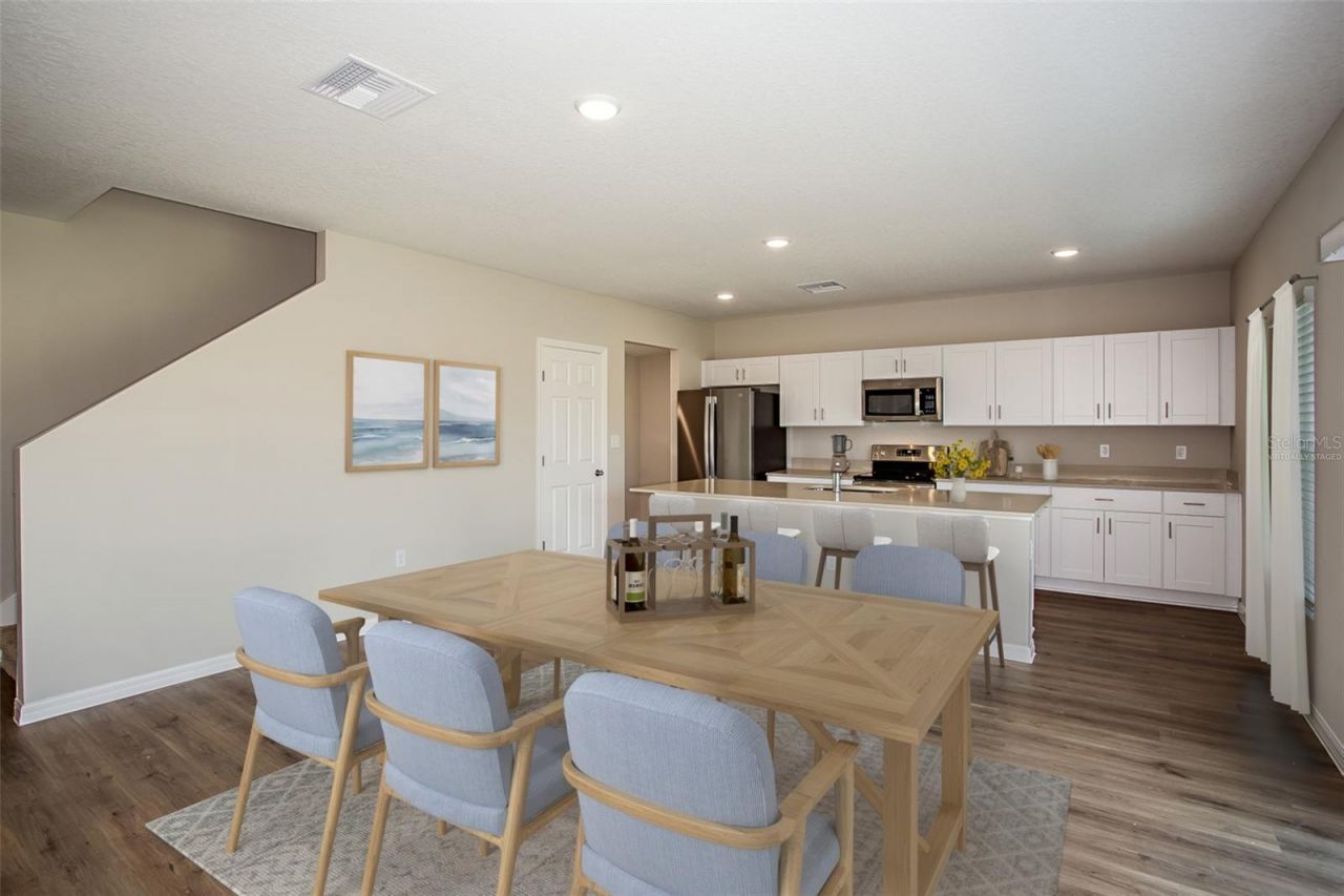 One or more photo(s) has been virtually staged. Under Construction. Experience the allure of the Catalina at Lawson Dunes. Your dream home is here-modern design, tech-savvy features, and all the space to live life your way. Quartz countertops are featured throughout the home, while the new stainless-steel appliances in the kitchen and smart thermostat with voice control brings in the touch of modern technology. The open concept floorplan, perfect for entertaining or just hanging out, is complemented by stunning luxury vinyl plank flooring. The main floor includes a private bedroom and bathroom as well as flexible den space fit for a home office or gym. The remaining bedrooms are located upstairs with a convenient laundry room, including a new washer and dryer. The owner's suite is situated at the back of the home with a spa-like owner's bathroom connecting to a spacious walk-in closet. Rounding out the Catalina is lush landscaping and a vibrant elevation. Welcome to 5 bedrooms, 3 bathrooms and a private 2-car garage curated to fit your lifestyle. Your home at Lawson Dunes is just the beginning. The community offers a pool, playground, walking trails, and a dog park designed for everyday enjoyment. Located in Haines City with easy access to US-27 and I-4, residents stay close to local conveniences and regional destinations. Images shown are for illustrative purposes only and may differ from actual home. Completion date subject to change.
